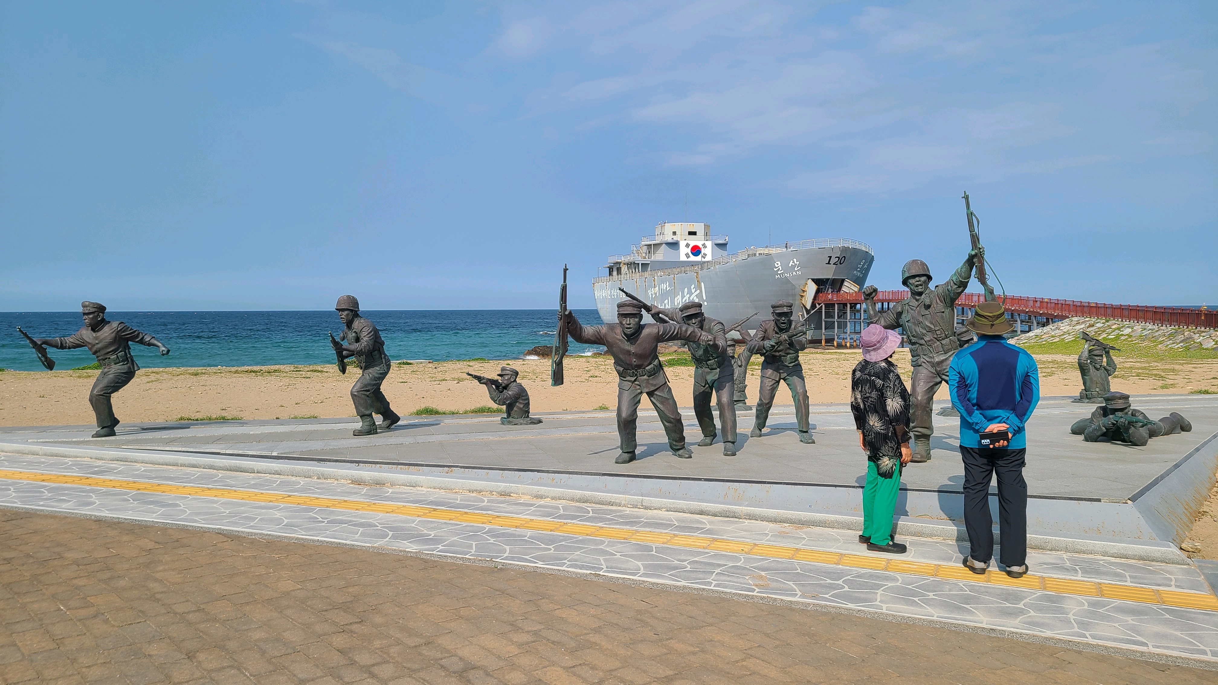 부경리를 지나면 장사(長沙)해수욕장으로 이어지는 7번 국도와 만난다. 국도를 따라 조금 걸으니 택시 기사님께서 꼭 둘러보라시던 '장사상륙작전'에 투입되었던 "문산호' 배가 보인다. 문산호는 '장사상륙작전 전승기념관'으로 이용 중이다.