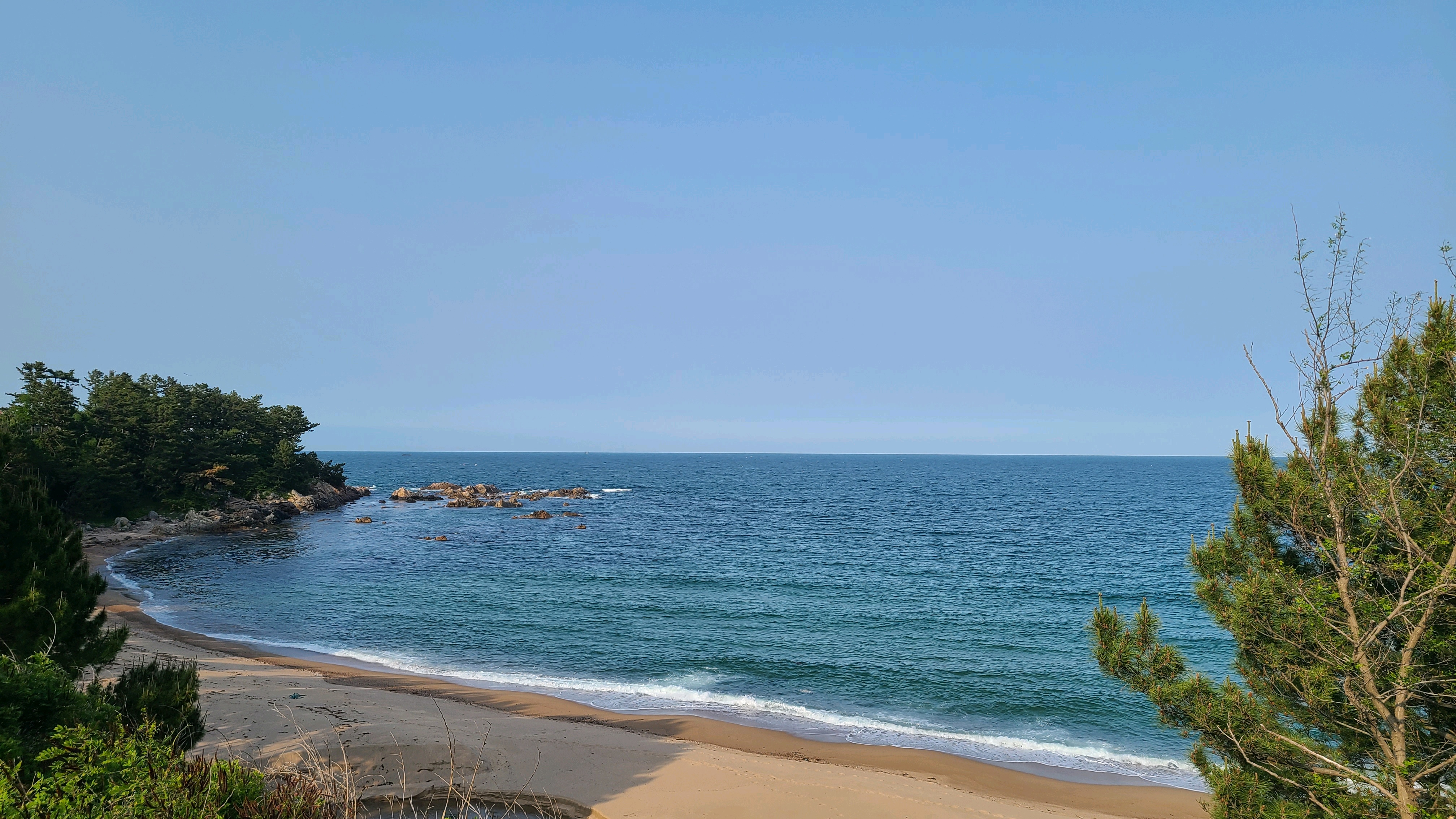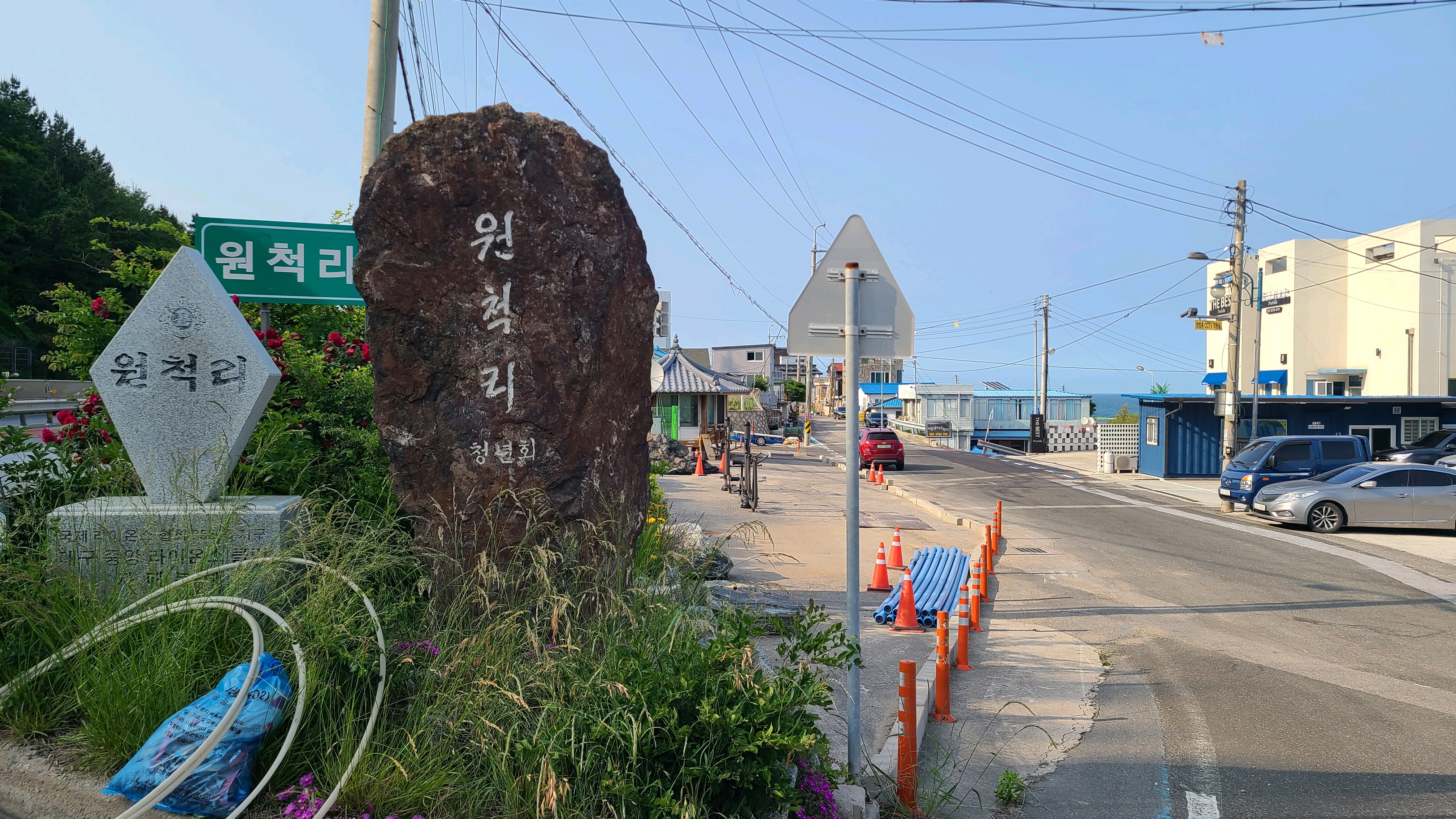 부흥리를 지나 해변 자갈길 걷고 있는데 갑자기 길이 끊어진다. 살펴보니 앞쪽은 군부대다. 좌측으로 방향을 돌려 군부대 담장 옆으로난 작은 길을 따라 올라오니 다시 7번 국도와 만나고 한참을 걸으면 원척리가 나온다.