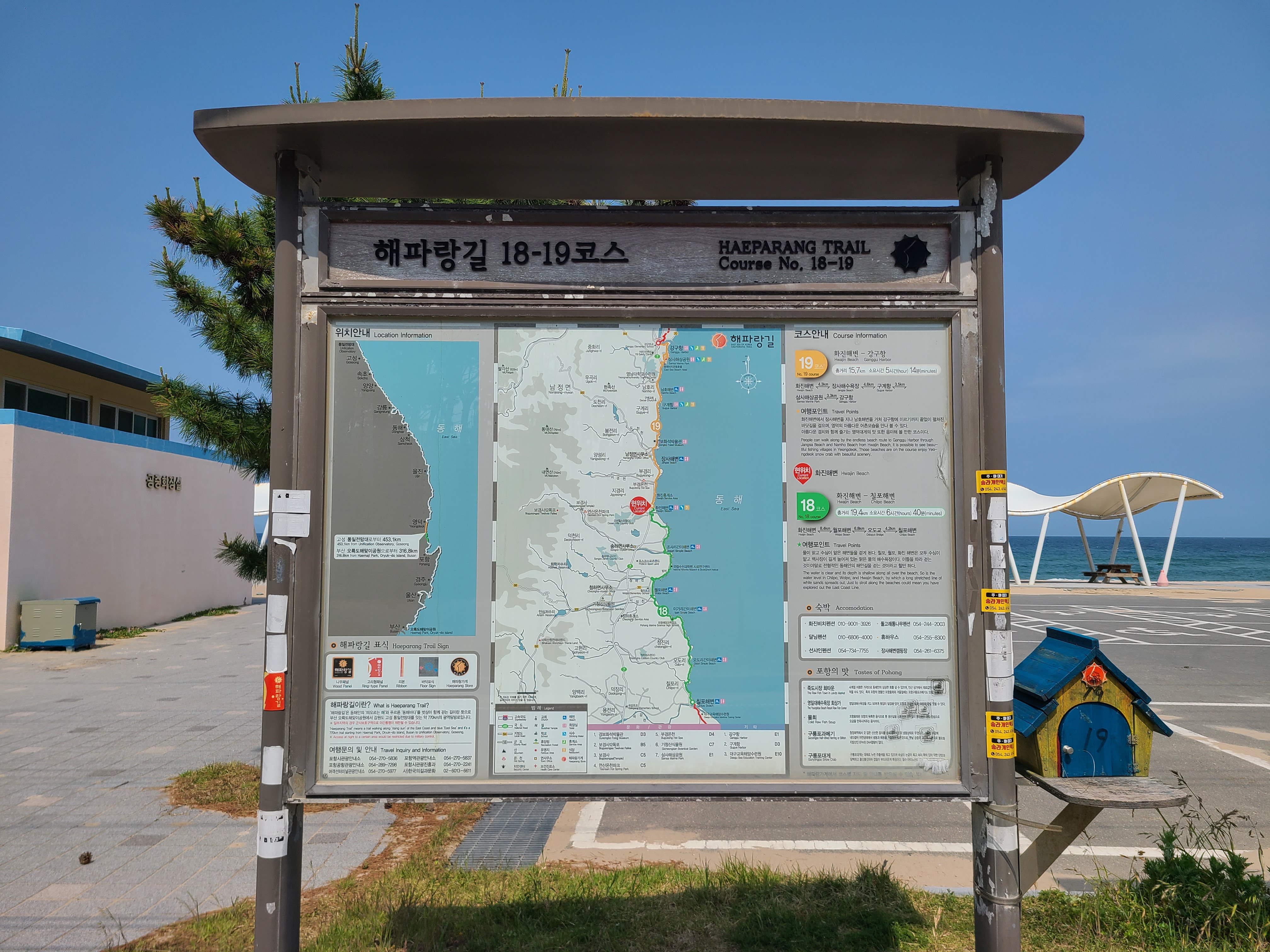 4월 20일 해파랑길 1코스를 걸은 후 5주 만에 다시 시작한다. 애초에 코스 순서대로 걸으려고 계획했었으나 이곳 동해에서 부산까지 내려가는 일이 만만치 않아서 중간은 건너뛰고 '영덕 블루로드'와 같이하는 19코스부터 시작해 완주 후 그전코스는 나중에 기회를 봐서 걸으려 한다.