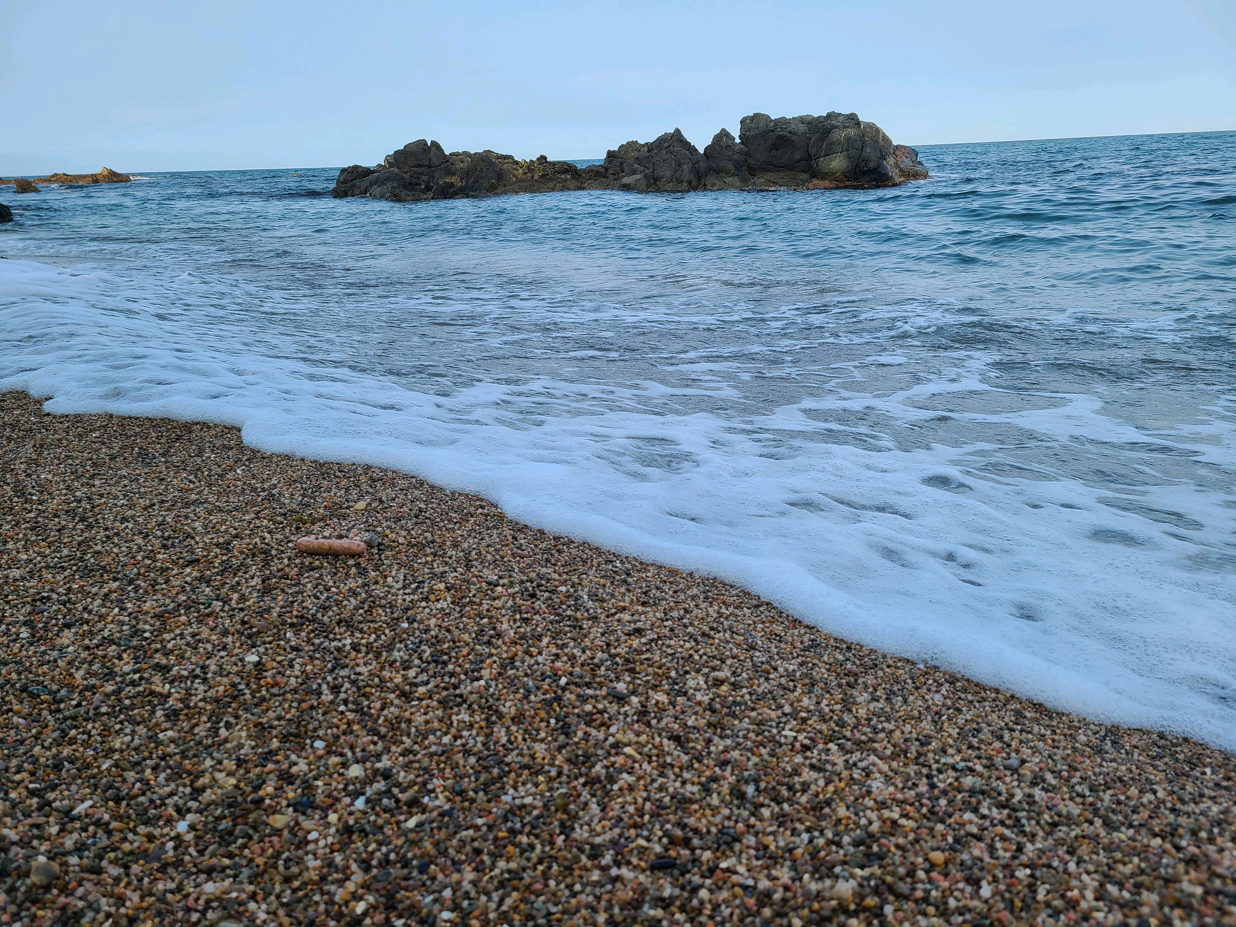 남호해수욕장을 지나면 나오는 남정방파제를 지나자 오색 빛깔을 띈 작은 자갈들이 깔려 있는 해변이 길손의 발걸음을 멈추게 한다. 오색의 작은 자갈밭을 발이 푹푹 빠지게 걸어본다.