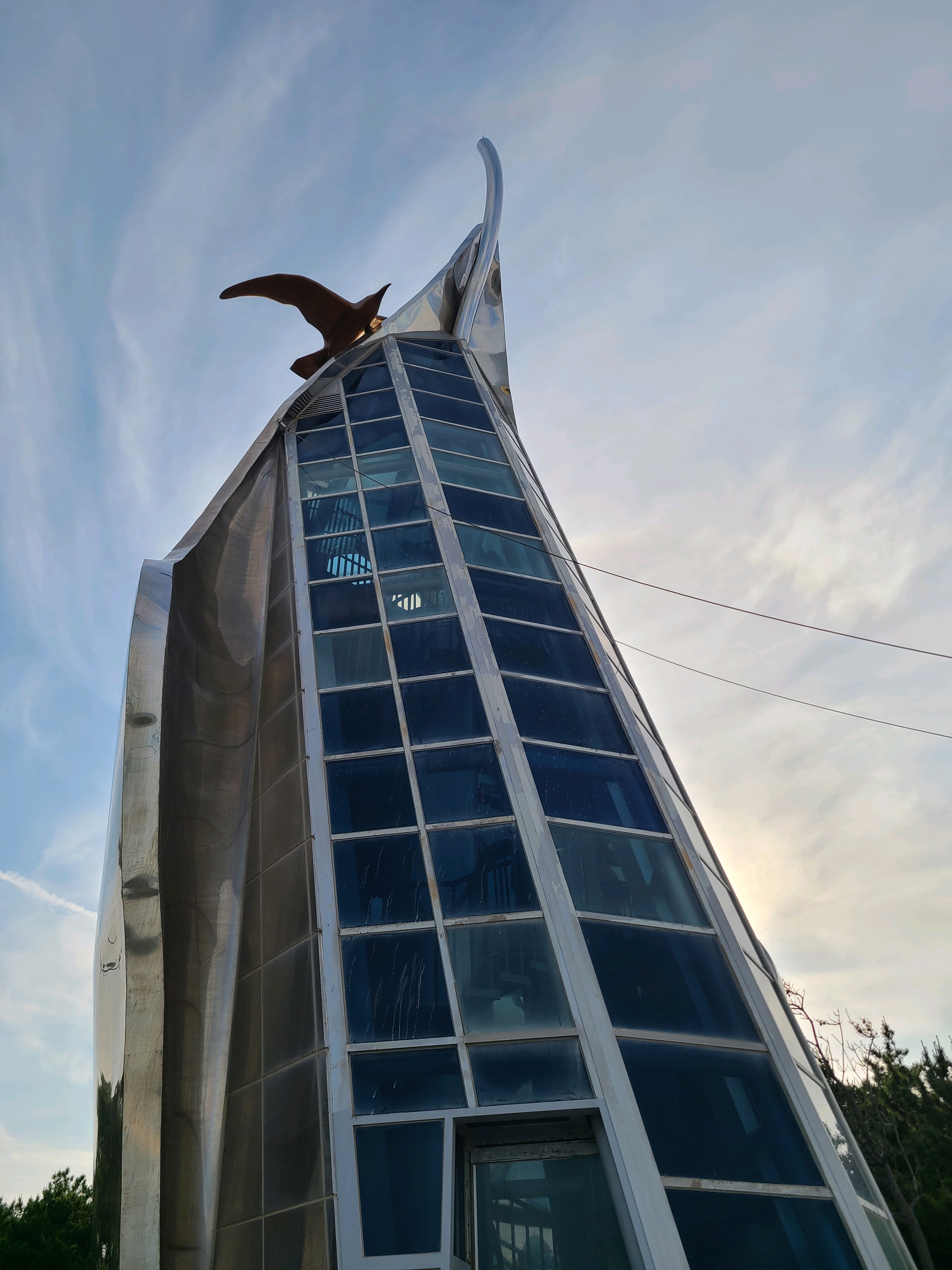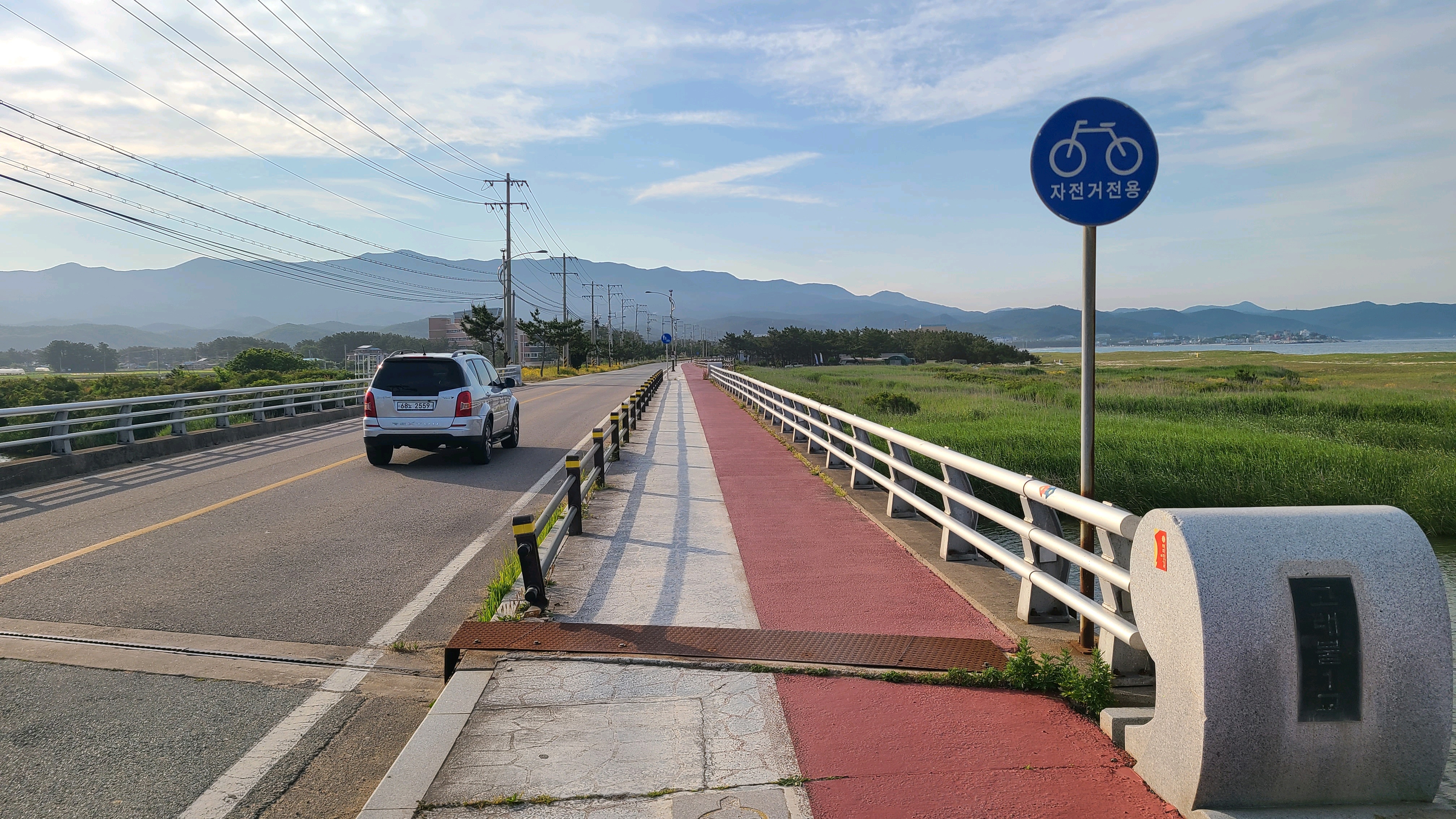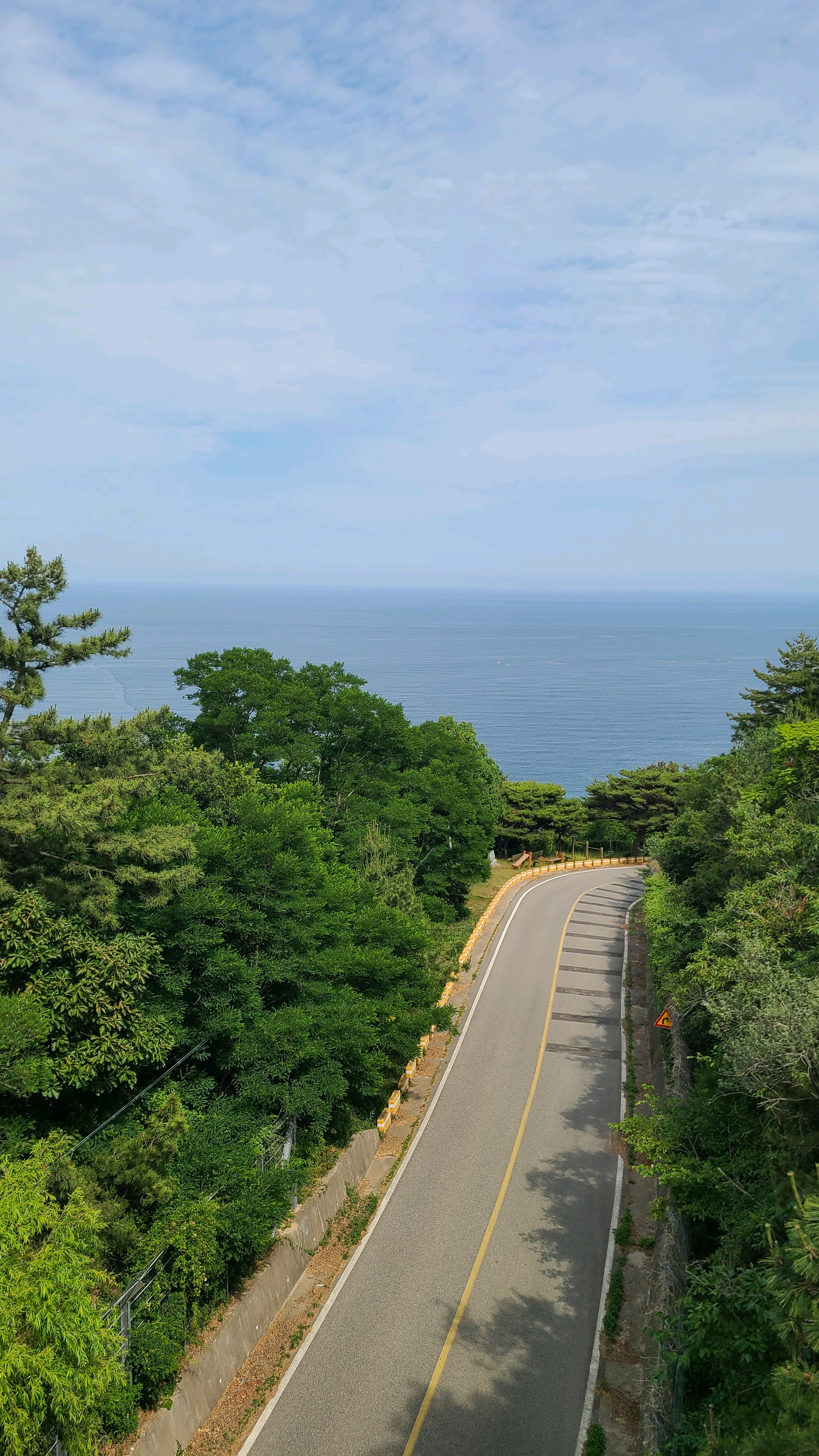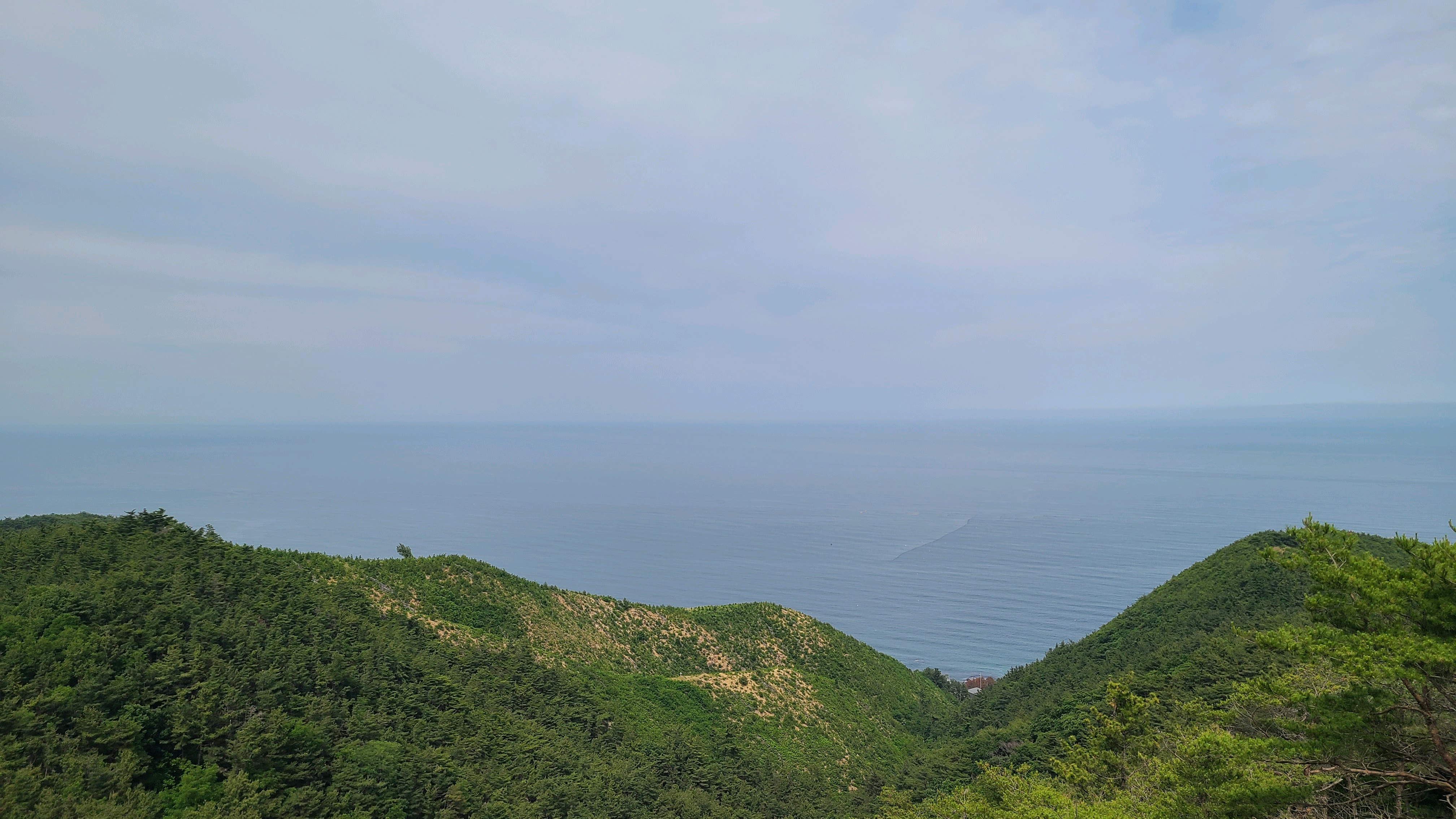 구름다리 위에서 바라보는 한가로운 바다. 너무 푸르지도 않고 적당히 해무가 낀 차분한 바다다. 마음이 평온해진다.