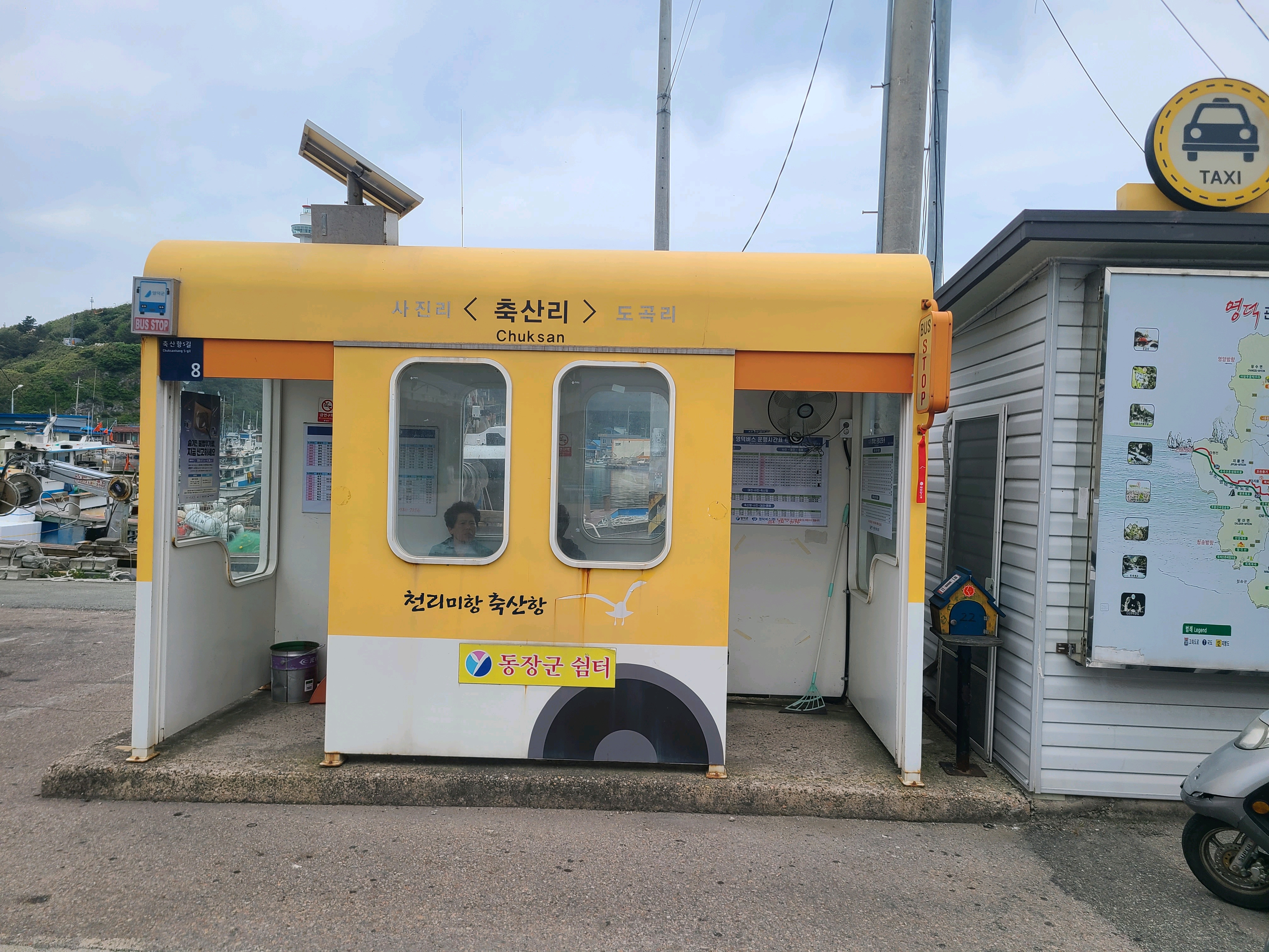 여기에서 농어촌버스를 타고 영해터미널에 도착하니 축산항으로 가는 막차가 방금 떠났다고 한다. 할 수 없이 택시를 타고 축산항으로 가서 차를 가지고 돌아왔다.