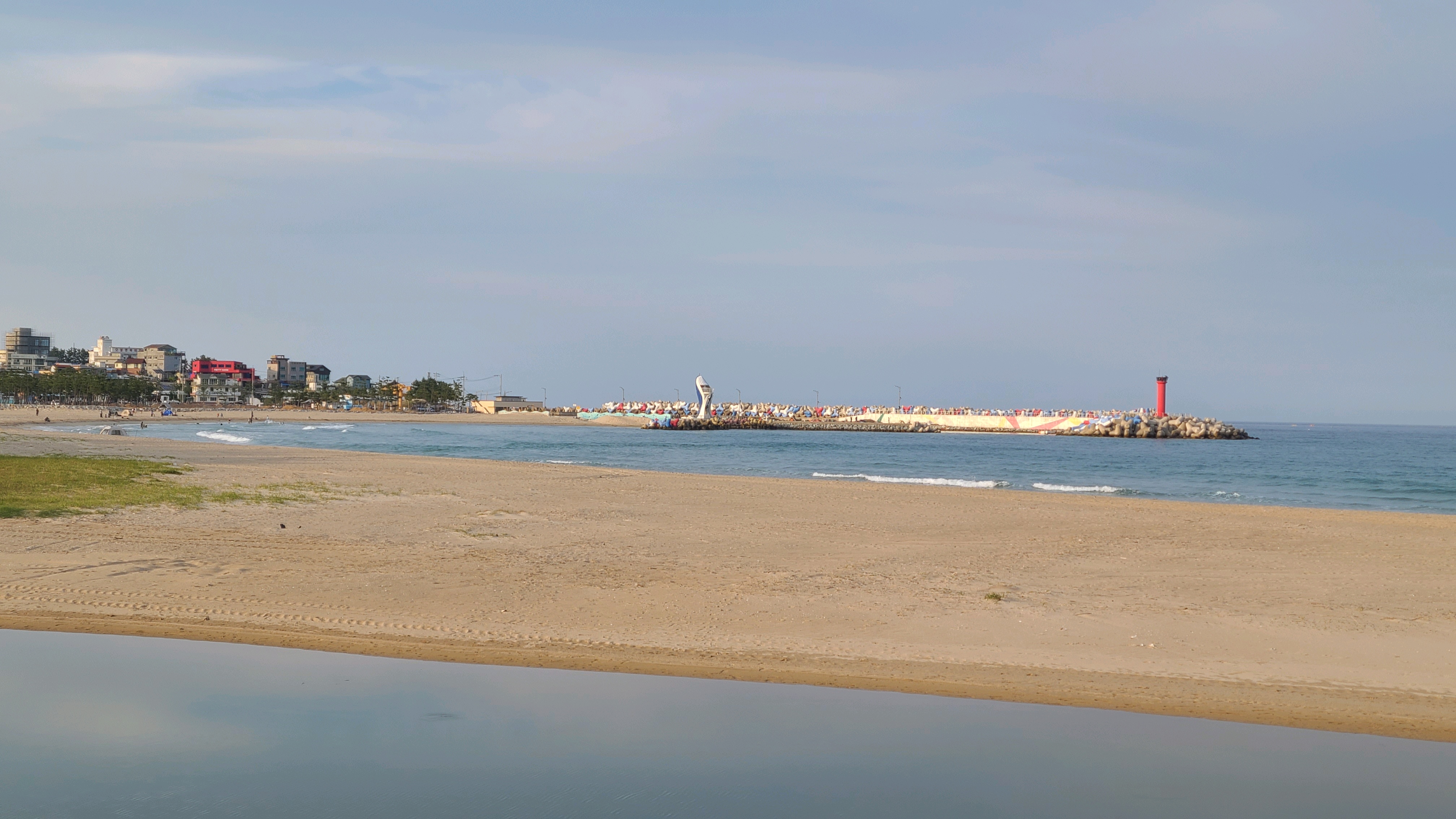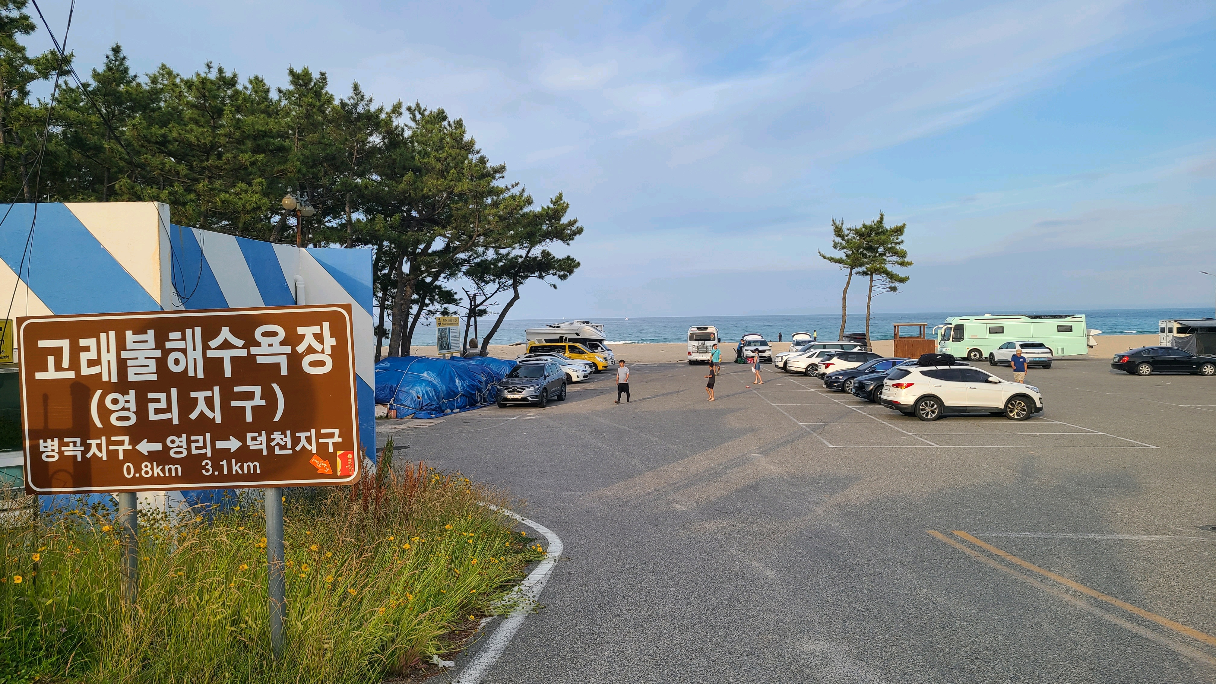 대진항을 지나 대진해소욕장에 도착한다. 해변에는 한가롭게 낚시하는 사람들과 모래 속에서 뭔가를 캐는 아이들의 즐거운 모습이 보인다.