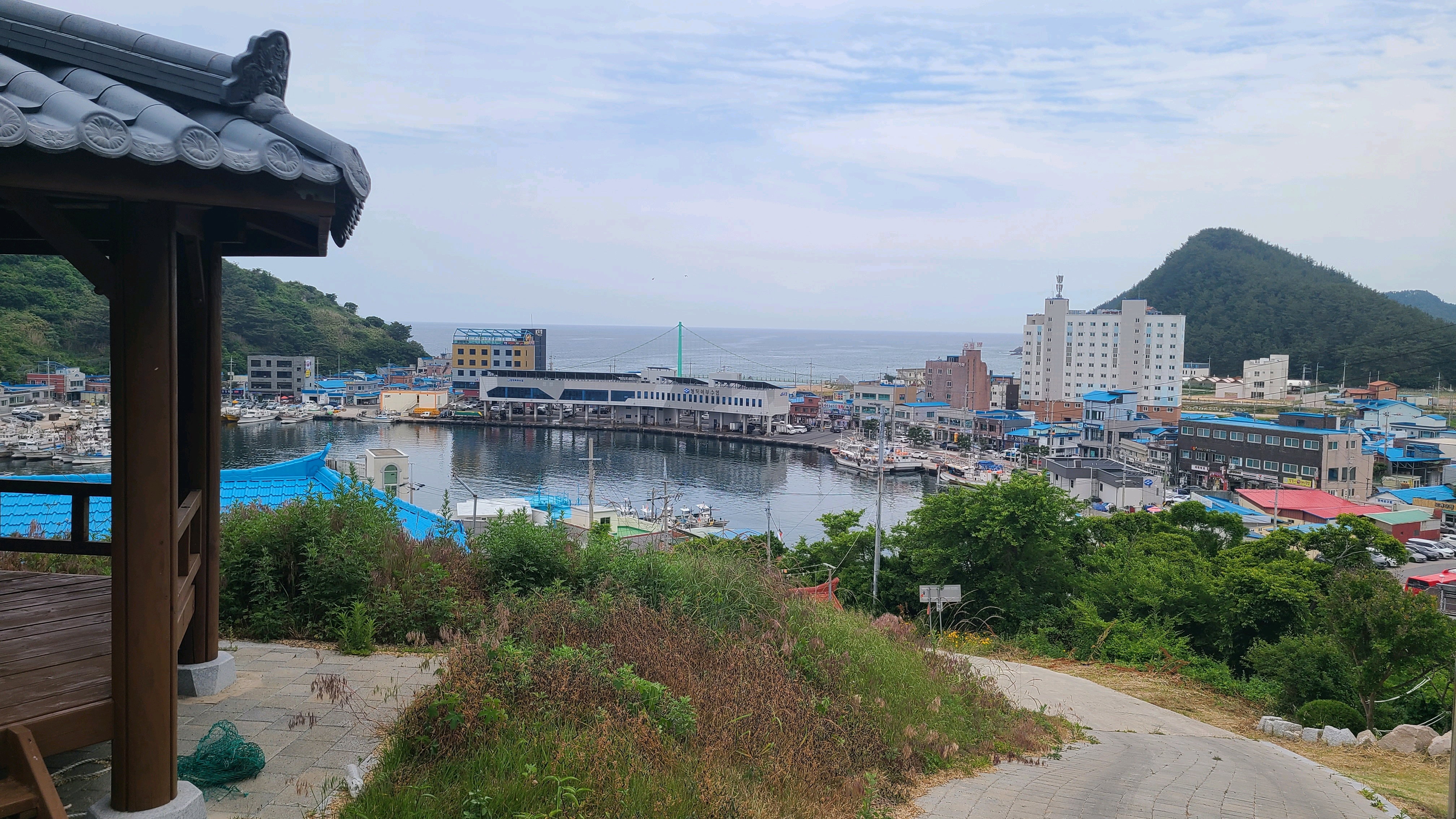 언덕 위 정자 옆에서 잠시 뒤돌아 축산항 전경을 감상한다.