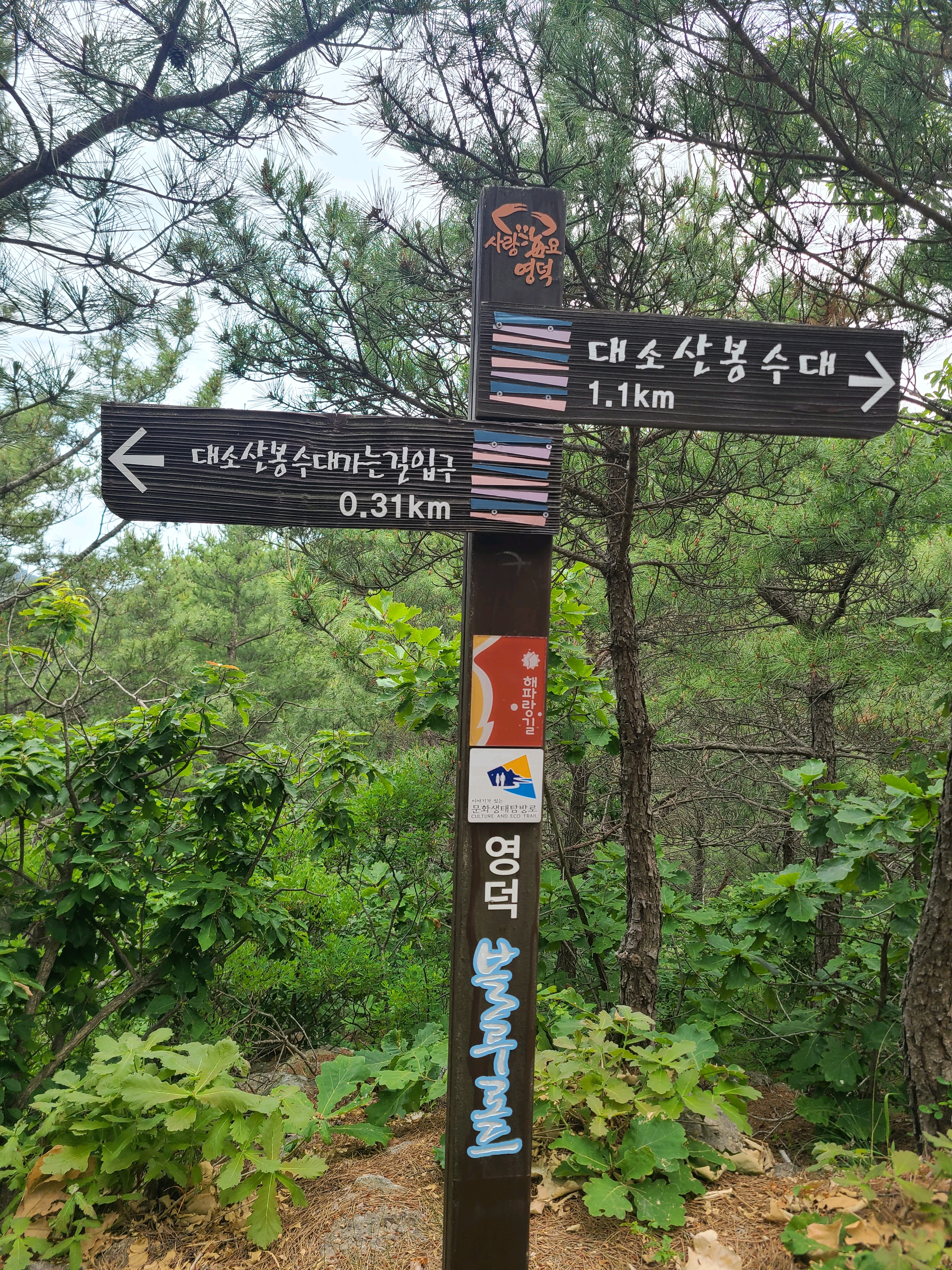 산 같지 않은 산, 와우산을 내려가 영덕대게로를 따라 5분 정도 걸으면 좌측으로 대소산(285.8km) '봉수대'가는 길이 나온다.