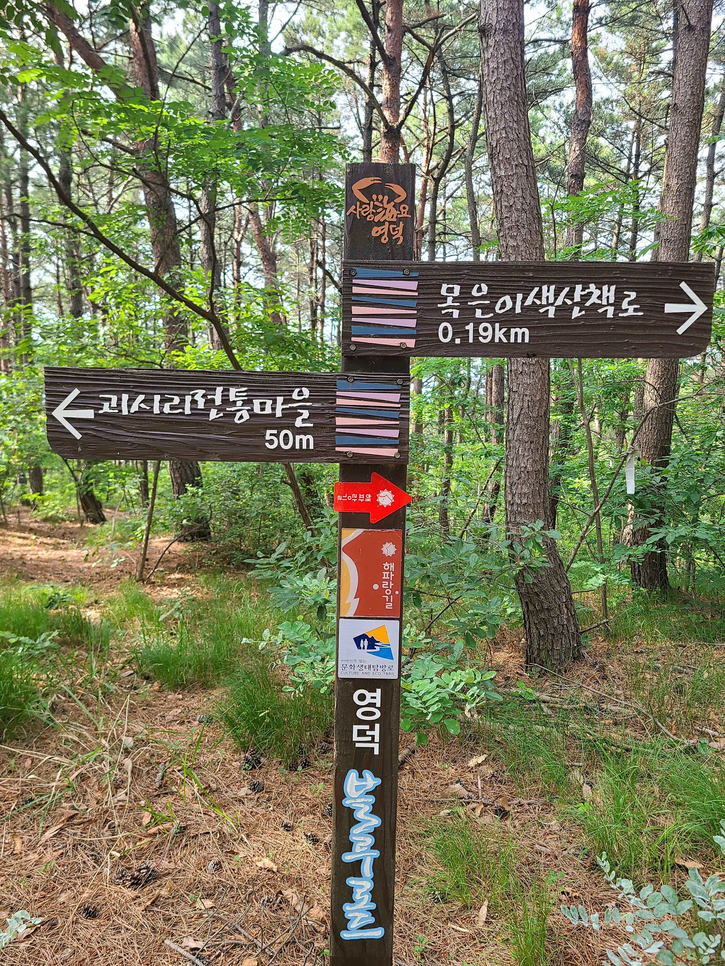 곳곳에 세워진 이정표는 해파랑길 22코스가 영덕 블루로드 C코스와 같이 함을 알려준다.